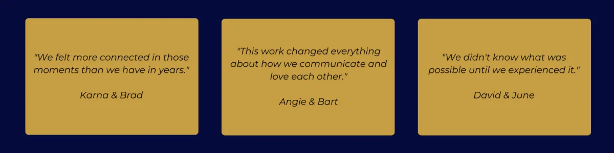 "This work transformed not only our relationship, but our family life. We communicate, connect, and love in ways we never imagined."